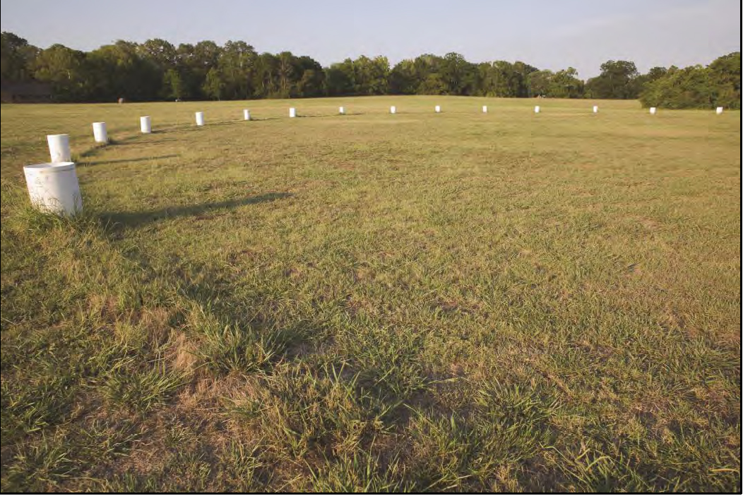 The image of the barrels marking one of the 27 post circles at Poverty Point, Louisiana, by Jenny Ellerbe. Used with permission.